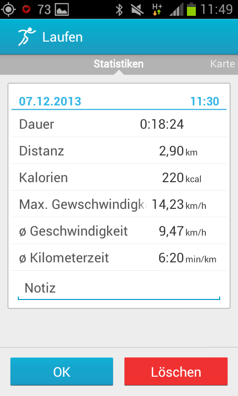 Fit App Screenshot vom LaufenFitApp – Nicht mehr als eine einfache GPS-Messung für Android-Smartphone!