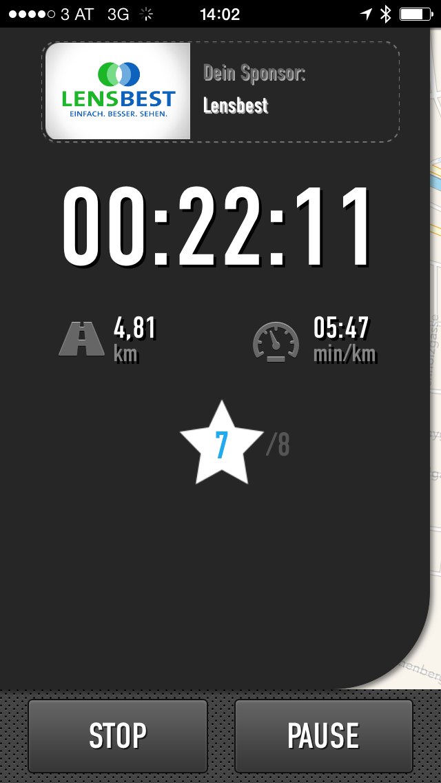 Auf der App werden demnach die Punkte und die vorhandenen Gutscheine in den Vordergrund gestellt. Während der Einheit werden am Dashboard die Zeit, Distanz und die Pace eingeblendet. Zudem werden die bereits erlaufenen Punkte für den nächsten Gutschein angezeigt.