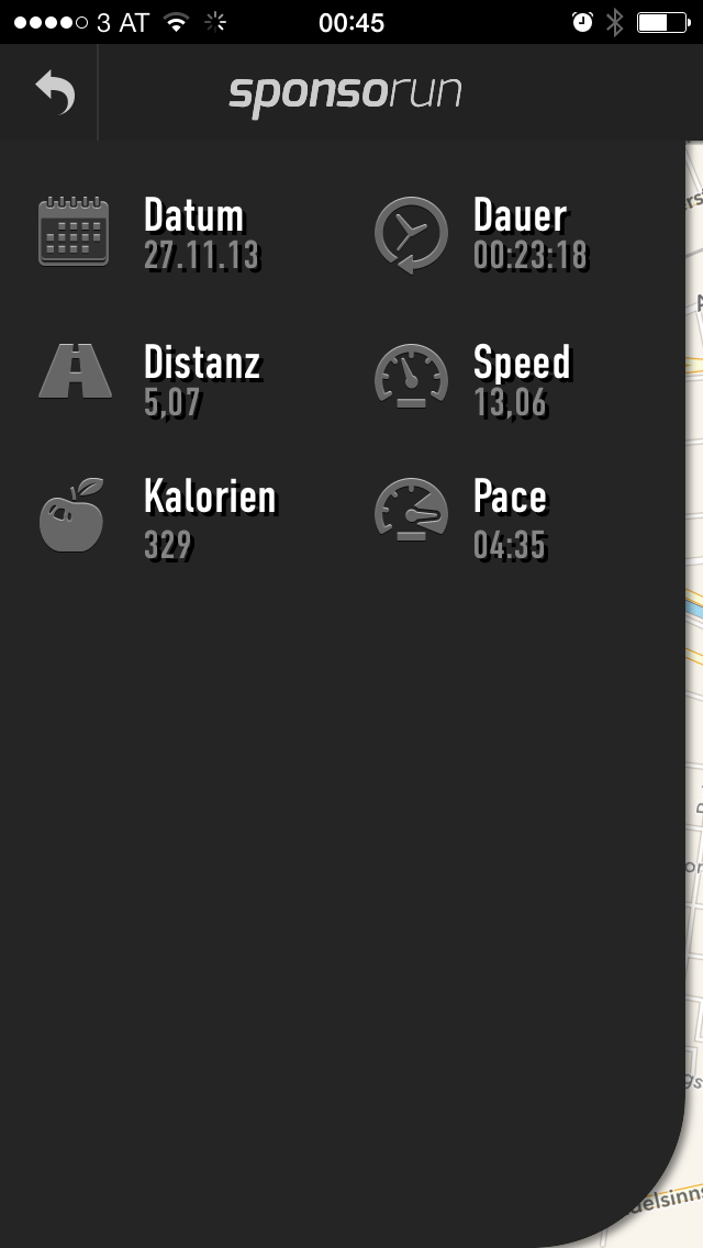 Auf dem Smartphone werden zu einer Einheit lediglich Datum, Dauer, Distanz, Geschwindigkeit, Kalorien und Pace angezeigt.