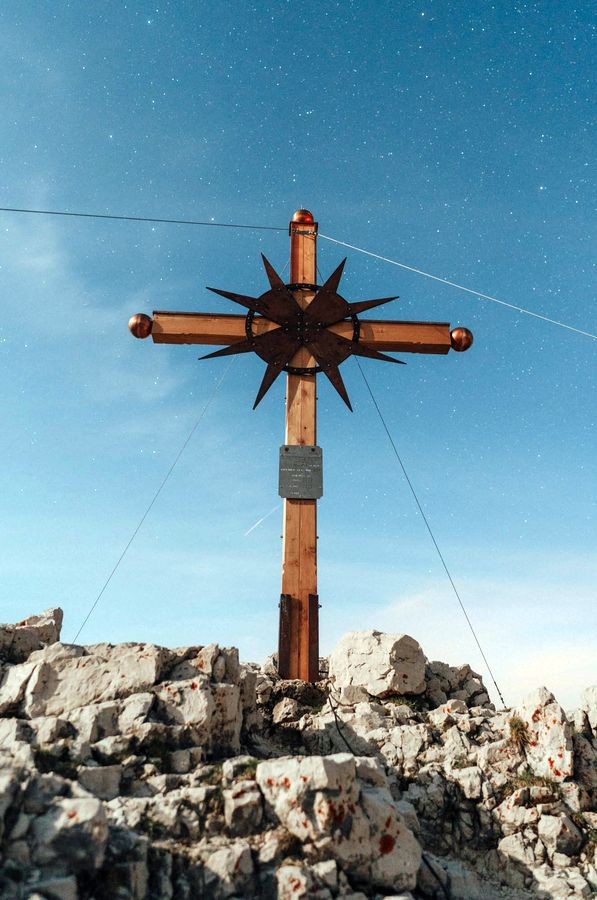 Das Gipfelkreuz besteht aus einer Lärche. Der Baum wurde von Waldaufseher Leonhard Hintner gefällt. Das Kreuz wiegt rund 80 Kilogramm.