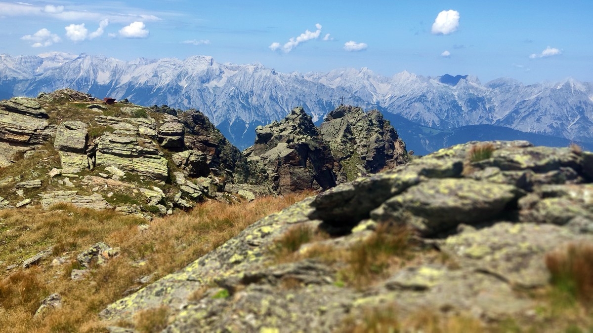 Das Haneburger Gipfelkreuz befindet sich nicht auf dem höchsten Punkt, sondern auf der anderen Seite des Grates.