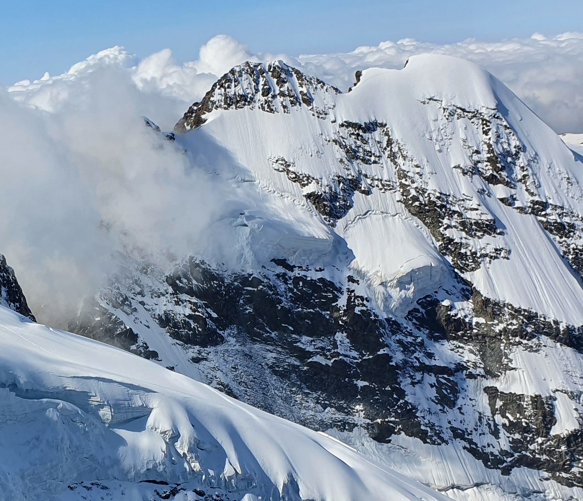 Piz Roseg - ein 3937 Meter hoher Berg in der Schweiz (Graubünden). Der Berg befindet sich in der Gebirgsgruppe Bernina-Alpen. Der Berg wurde erstmals im Jahr 1865 erfolgreich bestiegen.Dominanz (in km)
