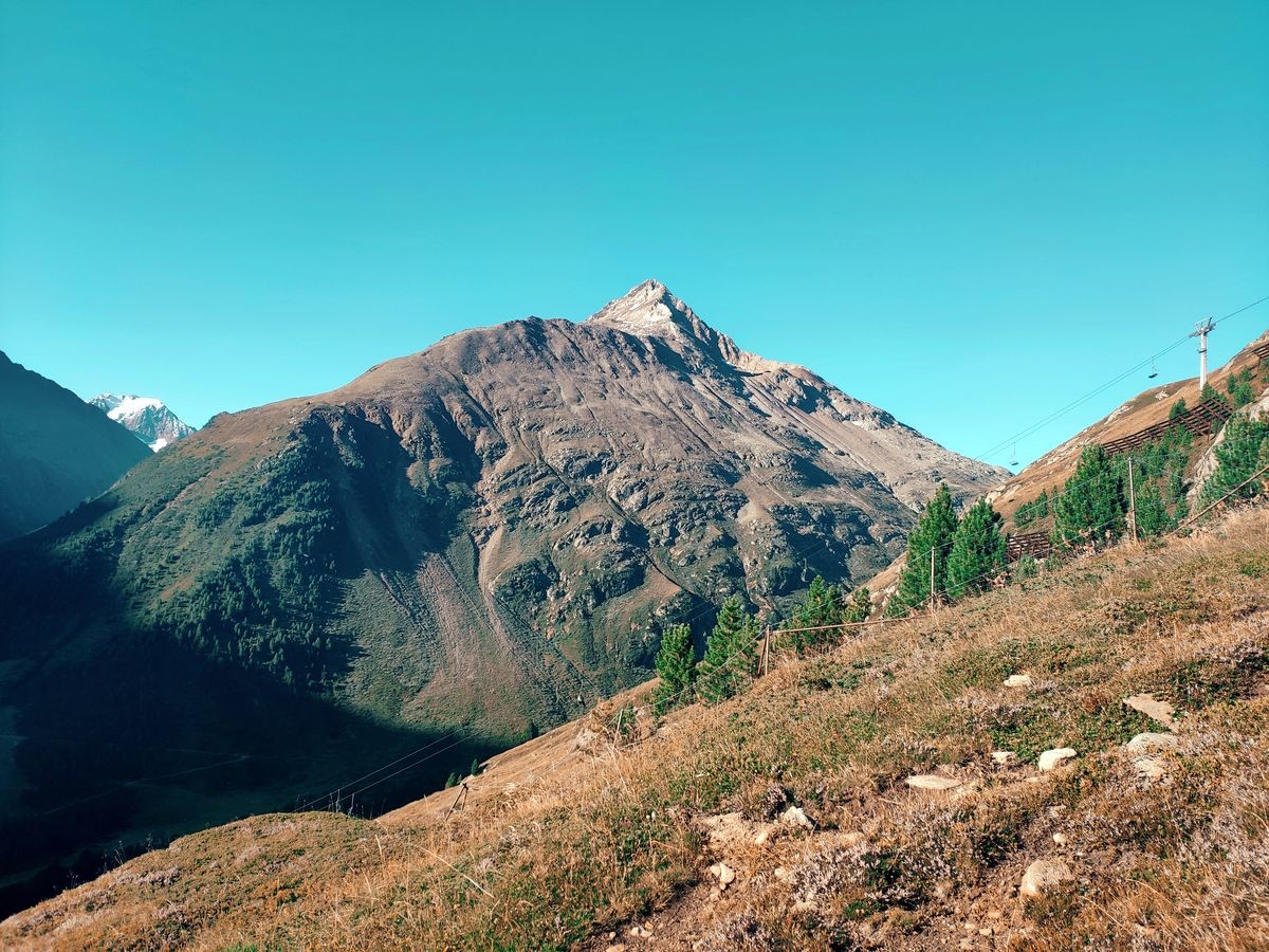 Talleitspitze - ein 3406 Meter hoher Berg in Österreich (Tirol). Der Berg befindet sich in der Gebirgsgruppe Ötztaler Alpen.Dominanz (in km)