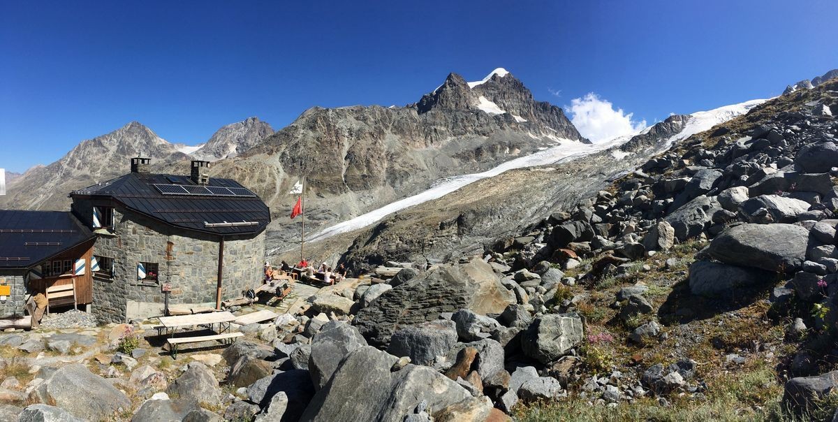 Hier ist man ganz nah an den Gletschern und kann auf der Sonnenterrasse das tolle Panorama, eine frische Gerstensuppe oder einen hausgemachten Kuchen geniessen. Die gemütliche SAC-Hütte bietet