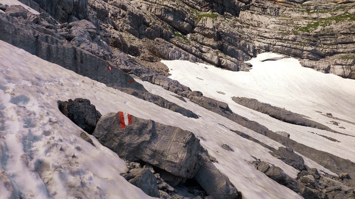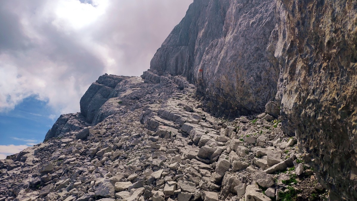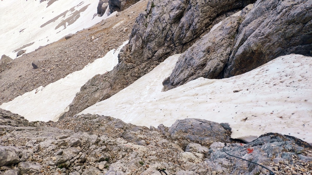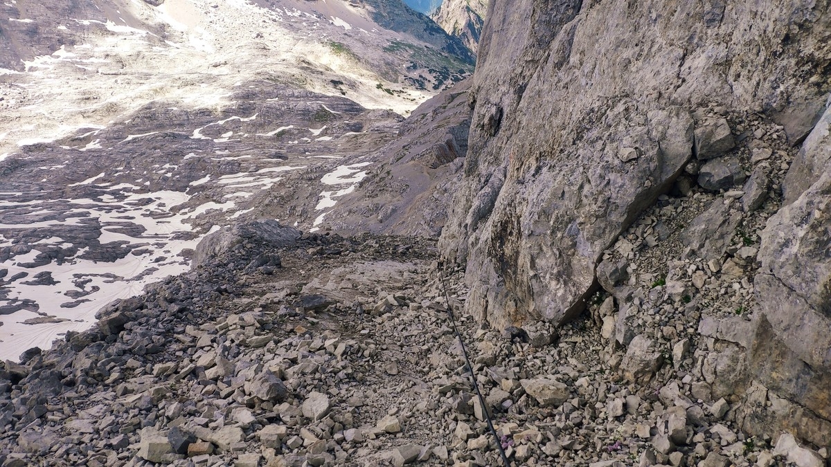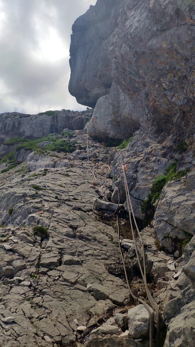 - Dort führt ein fast durchgehend fixseilversicherter Abschnitt im Gehgelände auf eine Scharte (Kuchelnieder).