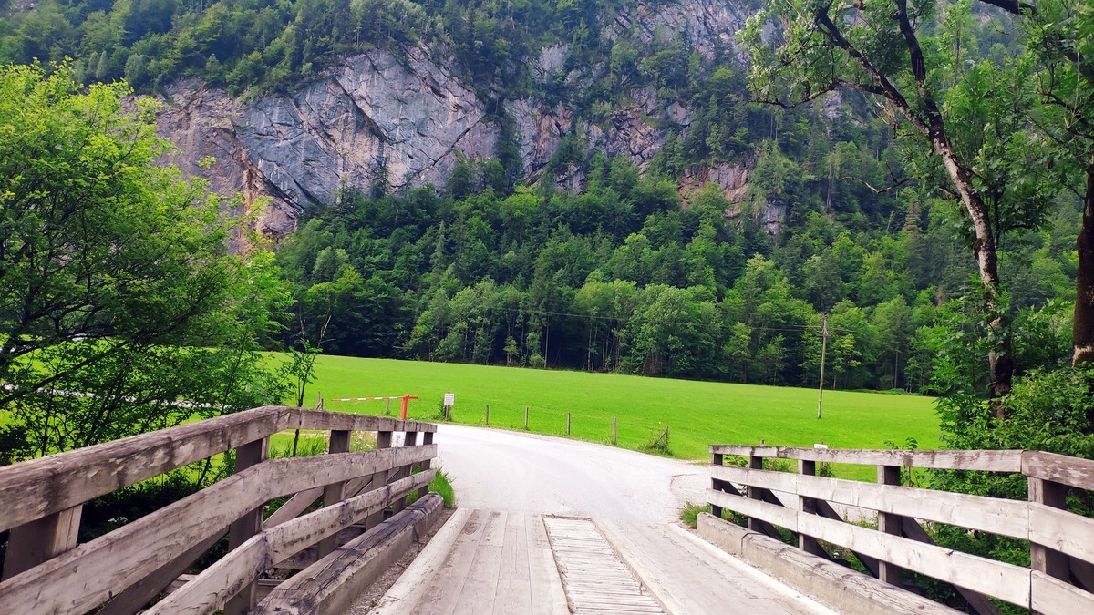 - Auf der Brücke über die Saalach und einige hundert Meter auf der asphaltierten Straße entlang.