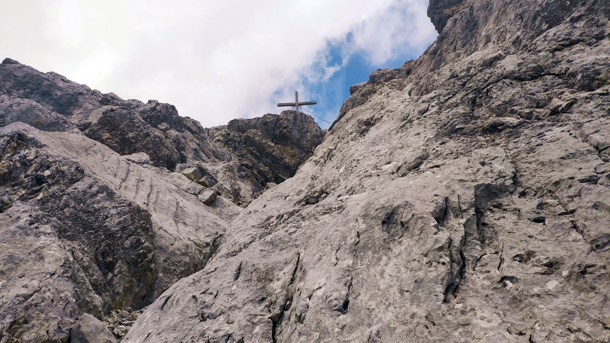 - Dort weiter und wieder ein kurzes Stück später bei einem Wegweiser nach links rund 40 Höhenmeter bergauf zum Hochzint. Dieser Nebengipfel mit Gipfelkreuz sollte definitiv mitgenommen werden. Immerhin fallen die paar Höhenmeter mehr oder weniger auf dieser Tour auch nicht mehr ins Gewicht.
