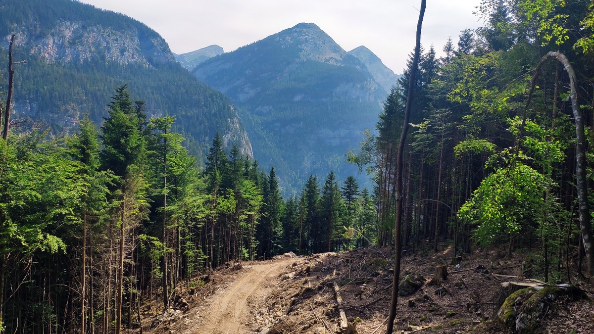 - Danach länger auf einer Forststraße bis zu einem kleinen Parkplatz für das Hüttentaxi.