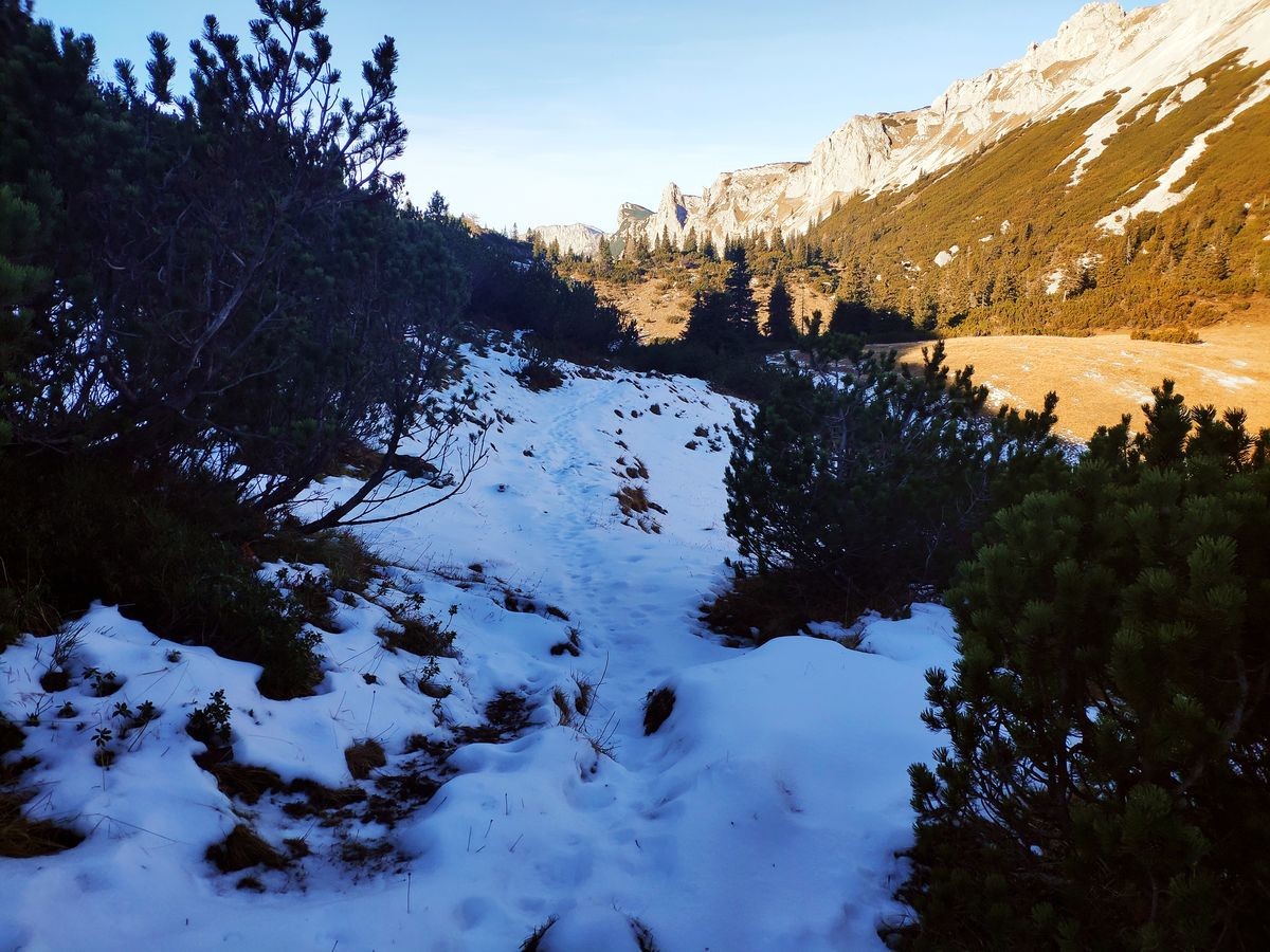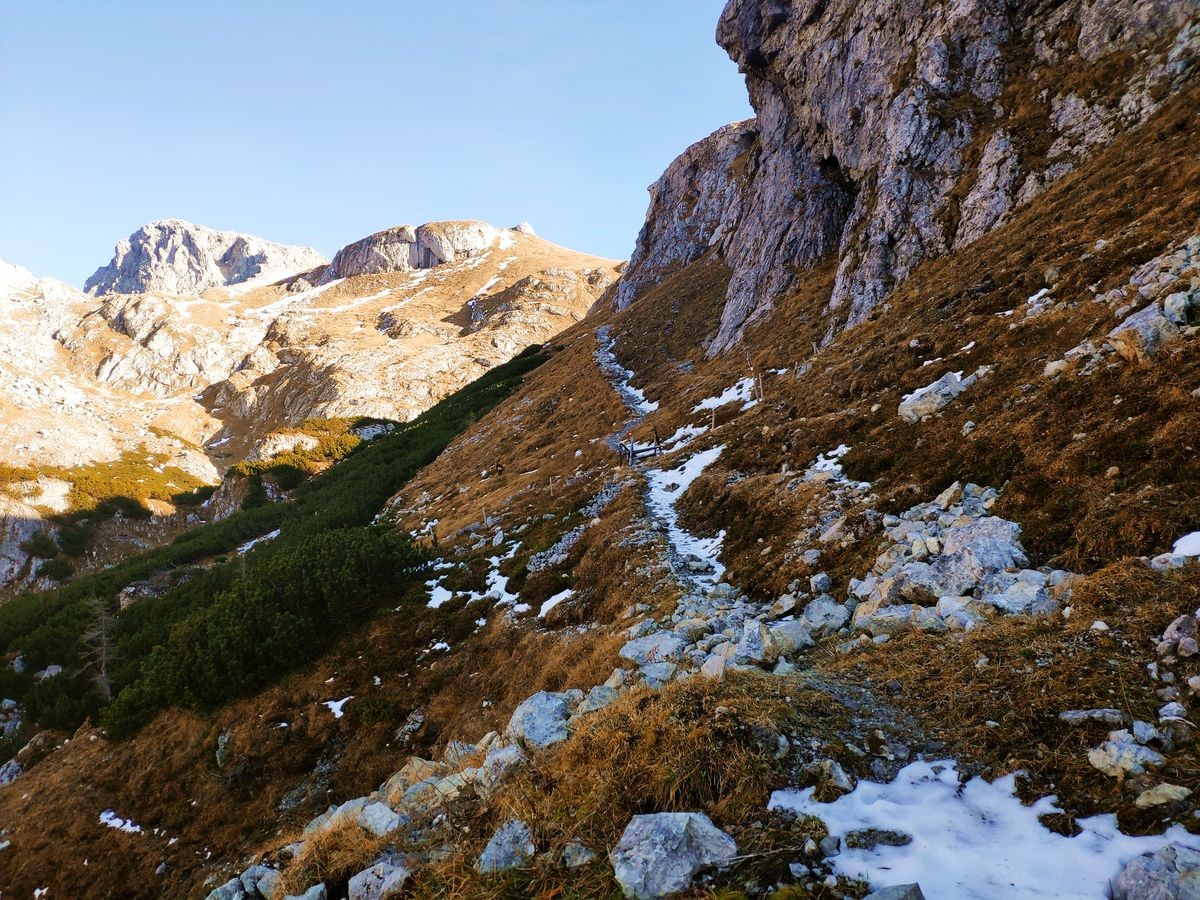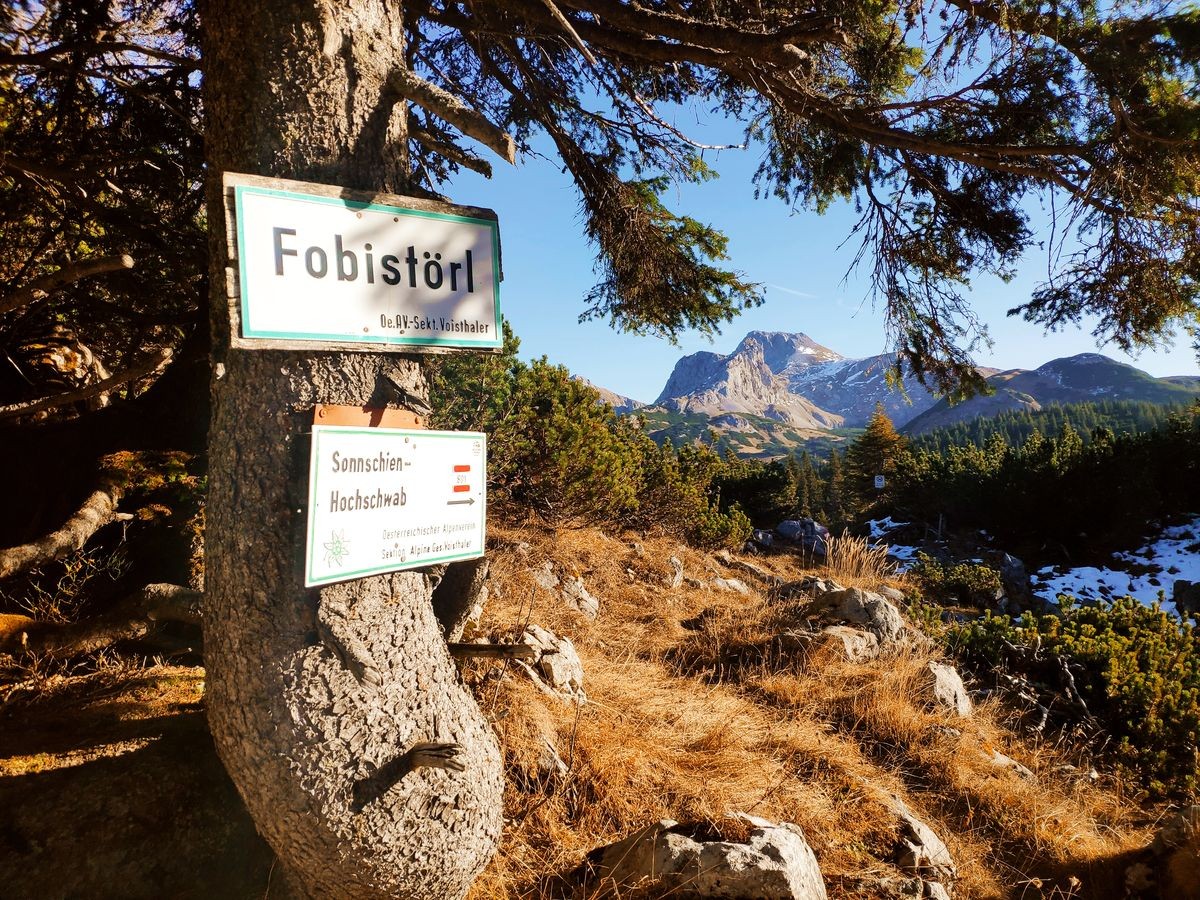 - Dann noch ein kurzes Stück dem Retourweg Richtung Sonnschienhütte folgen, ehe ein unmarkierter und kaum sichtbarer Pfad nach links abzweigt.