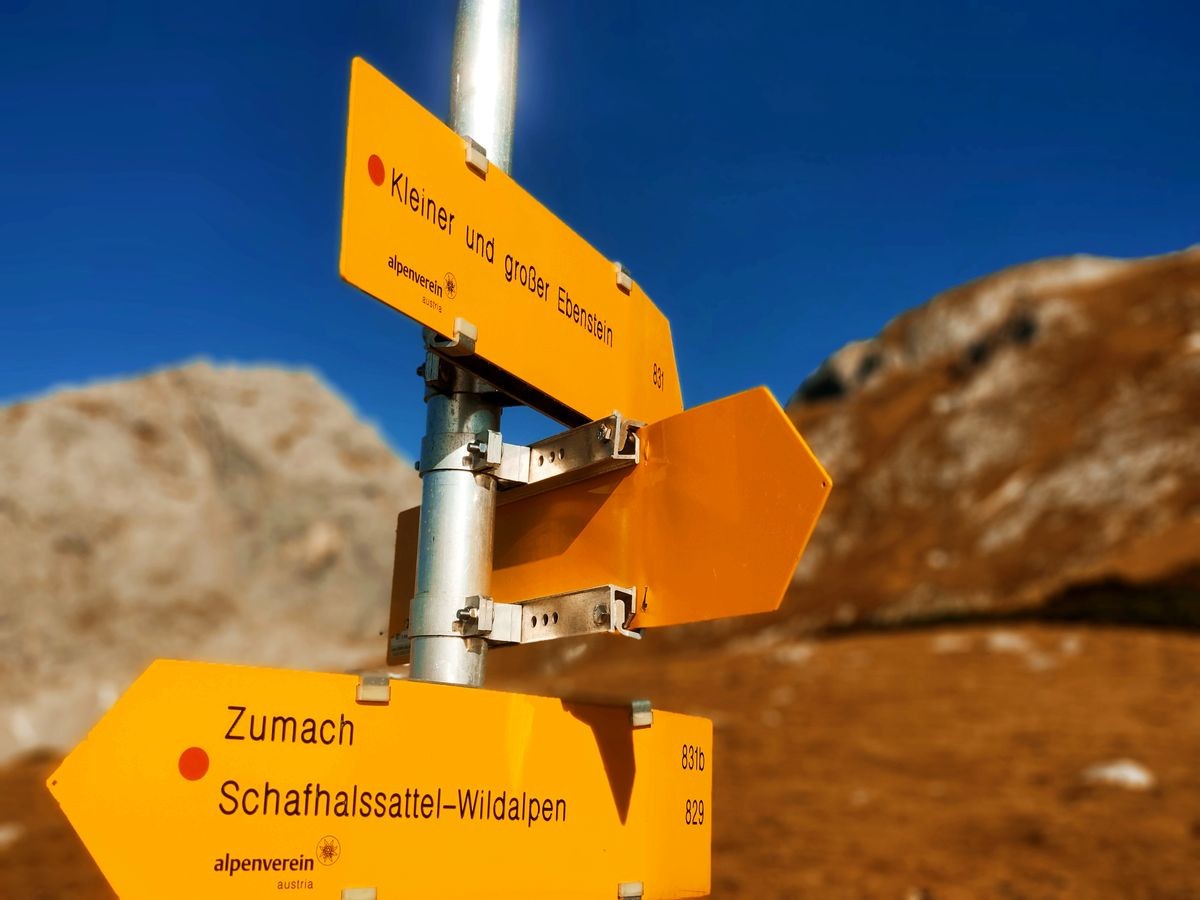 - Vom Ebenstein auf dem markierten und beschilderten Wanderweg retour Richtung Sonnschienhütte