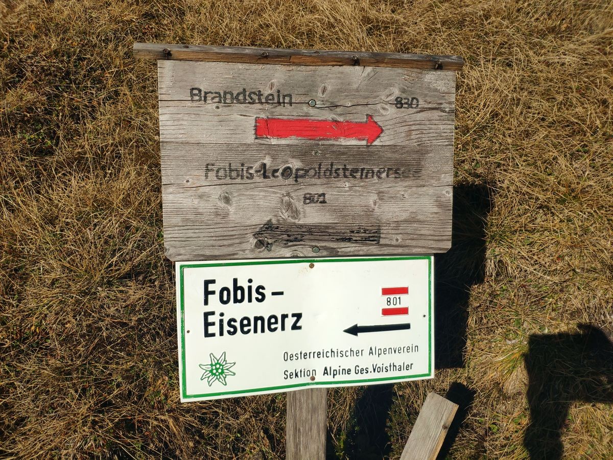 - Kurz vor der Hütte nach links auf Weg 801 Richtung Fobis abzweigen.