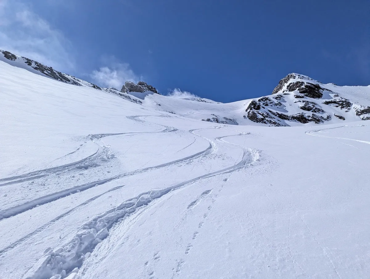 - Am Grasstallferner kann man links auf einen höhere gelegenen Punkt des Gletschers auf etwa 3.100 Metern Höhe aufsteigen (ca. 150 Höhenmeter) und von dort erneut abfahren. Bonusmeter für alle, die noch nicht genug haben.