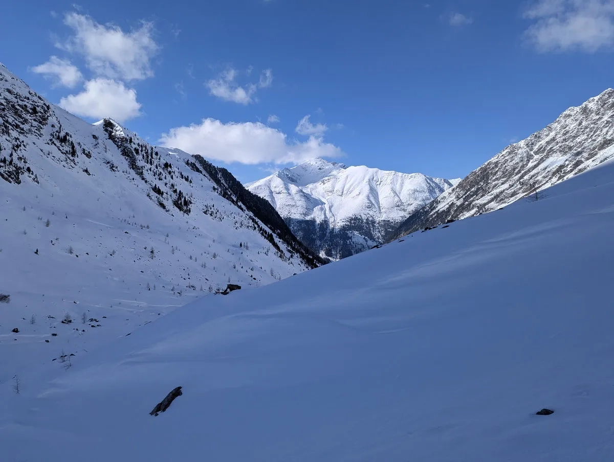 - Aufstieg und Abfahrt über das Grastal. Anspruchsvoller und lawinenanfälliger, da das Tal von steilen Hängen umgeben ist. Daher eher als Abfahrtsvariante sinnvoll.