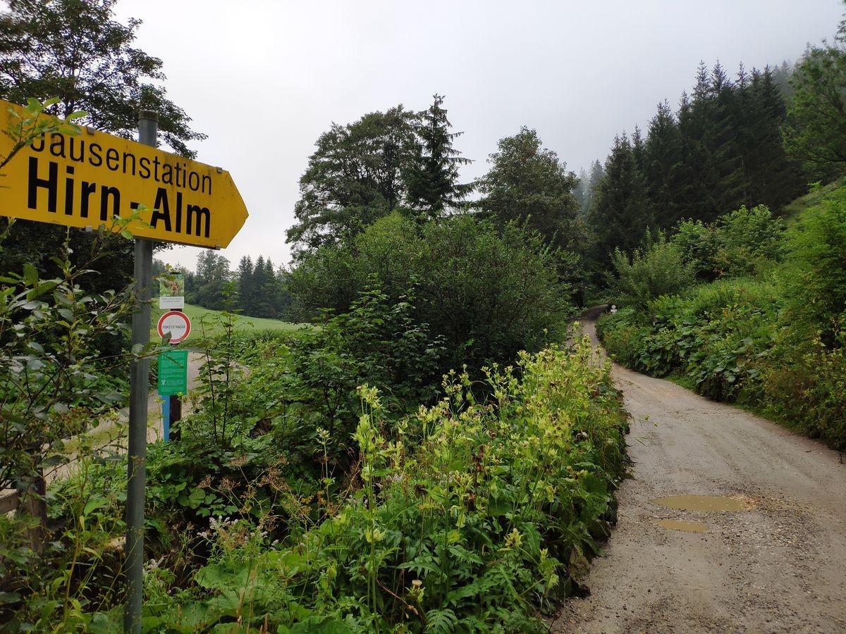 Zu Beginn der Schotterstraße (2 km vor der Hirn-Alm), 400 Meter vor der Hirnalm oder direkt bei der Hirn-Alm. Alle Parkplätze sind gebührenfrei