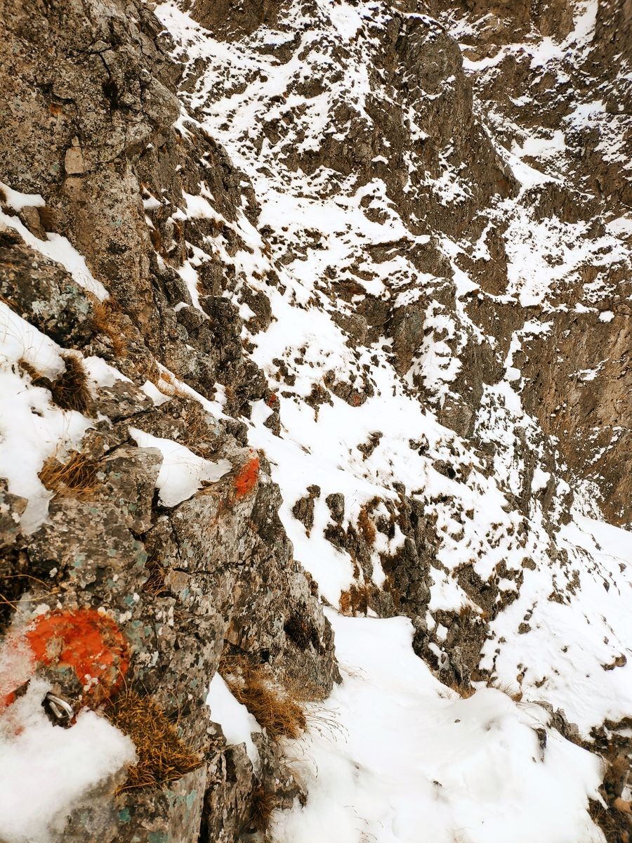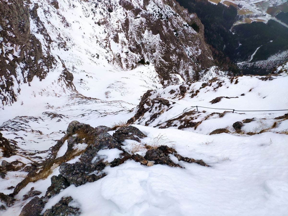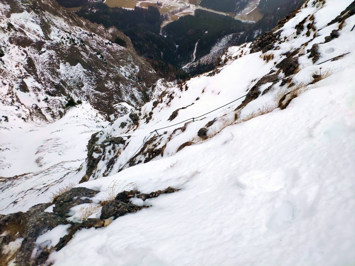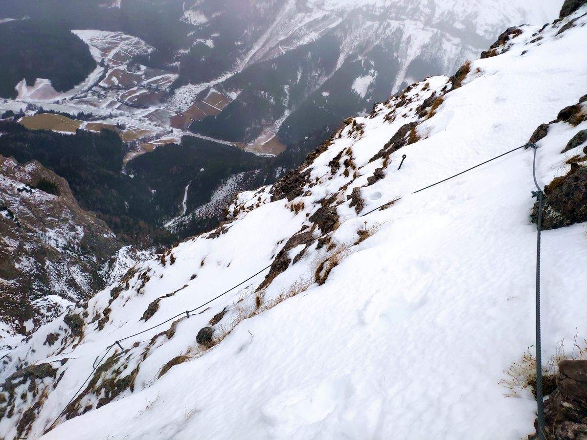 Im Winter Steigeisen bzw. Grödel zur Sicherheit mitnehmen. Bei Vereisung sind zudem die Stahlseile womöglich nicht zu greifen, was die Schwierigkeit um ein Vielfaches erhöht (evtl. kleine Schaufel mitnehmen, um Seile freizuschaufeln) oder den Steig gar unmöglich macht.