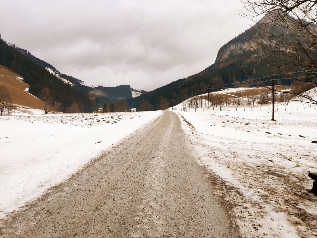 Achtung: Der letzte Kilometer zum Parkplatz nach dem Haus "Nassbauer" ist ein Schotterweg (mäßiger Zustand) und wird im Winter nicht geräumt. Daher ist er ohne Schneeketten definitiv nicht befahrbar, aber auch mit Schneeketten nicht zu empfehlen bzw. nicht sinnvoll. Denn gut 500 Meter vor dem Haus Nassbauer gibt es auf der rechten Seite einen großen Holzplatz mit einiges an freier Fläche. Parken wird hier im Winter normalerweise toleriert.