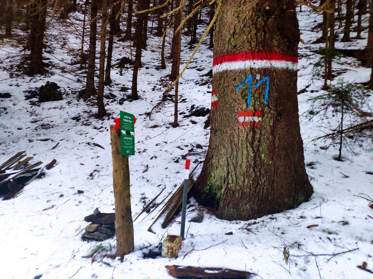 - Danach geht es wieder etwas länger durch den Wald vorbei an einer unbewirtschafteten Hütte