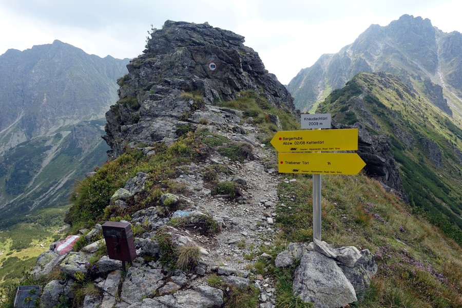 Kurze Rourtenbeschreibung via Gamskögelgrat und Rundwanderung: Parkplatz Bergerhube - Mödringalm - Abzweigung links (blaue Markierung auf Baum) - auf nicht markiertem Weg bergauf zur Amtmannscharte - links zum Mödringkogel (2142 m) - retour zur Amtmannscharte - Grateintstieg - Gamkögelgrat - Gamskögel (2386 m) - Hochleitenspitze (2329 m) - auf nicht markiertem Weg zum Knaudachkogel (2227 m) - auf nicht markiertem Wege zum Knaudachtörl - Kleiner Grießstein (2175 m) - Knaudachtörl - retour zum Parkplatz Bergerhube