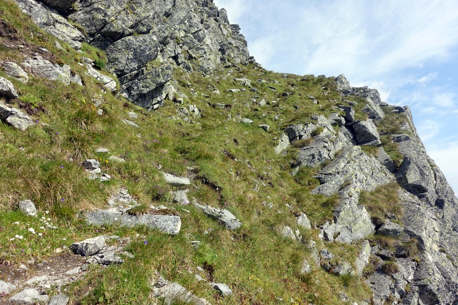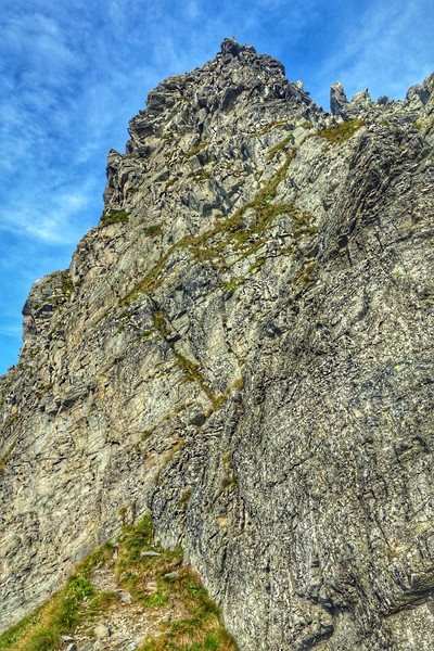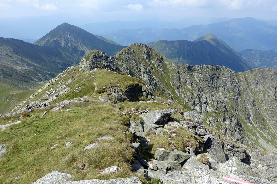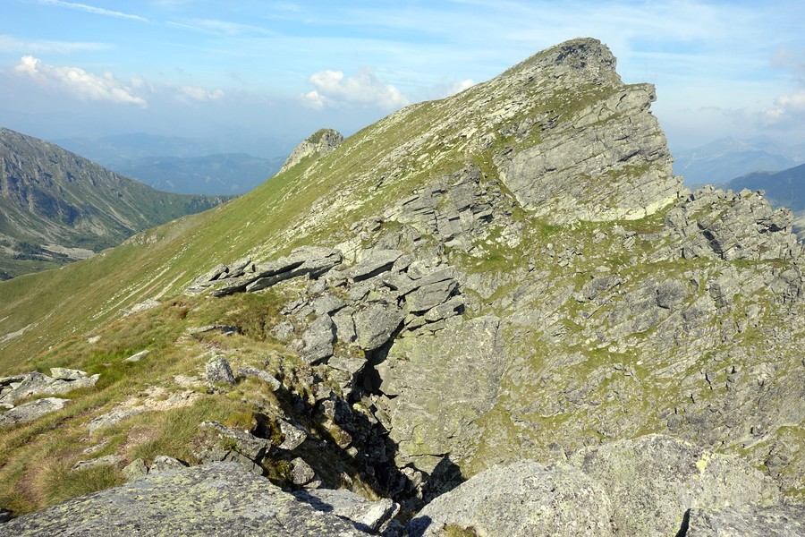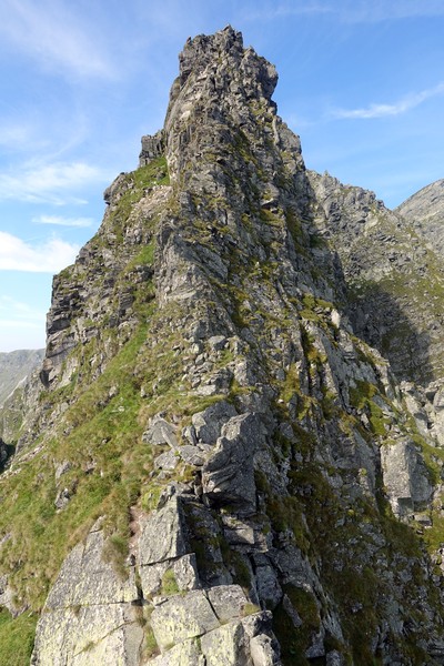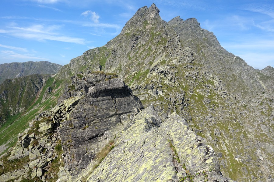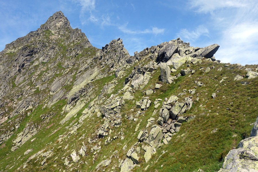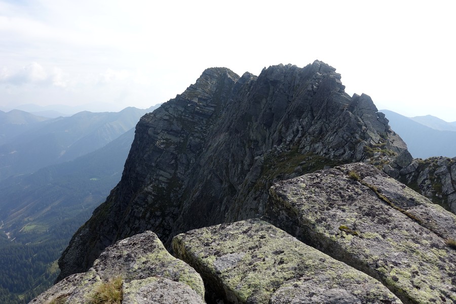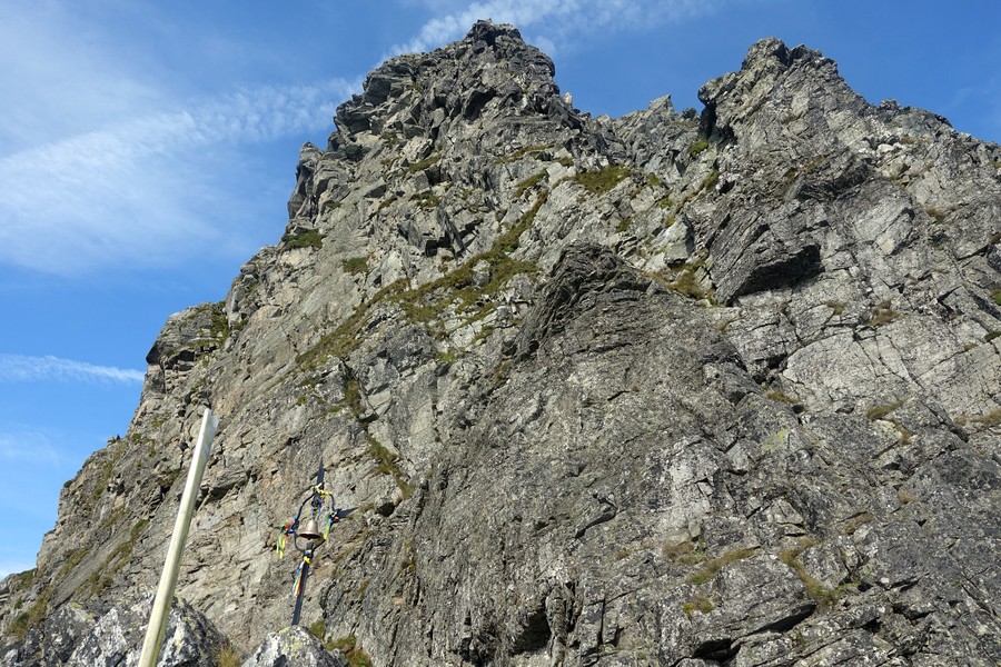 Lager und ausgesetzter Grat. Auch der Weg zum Grat ist teilweise ausgesetzt. Guter Orientierungssinn ist daher wichtig. Einige anspruchsvolle Kletterpassagen. Am Grat gibt es keine künstlichen Sicherungsmöglichkeiten und keine Markierungen. Nur für Erfahrene zu empfehlen. Nach dem Grat und dem Gipfel ist die Rundtour noch sehr lange, kann aber auch abgekürzt werden.