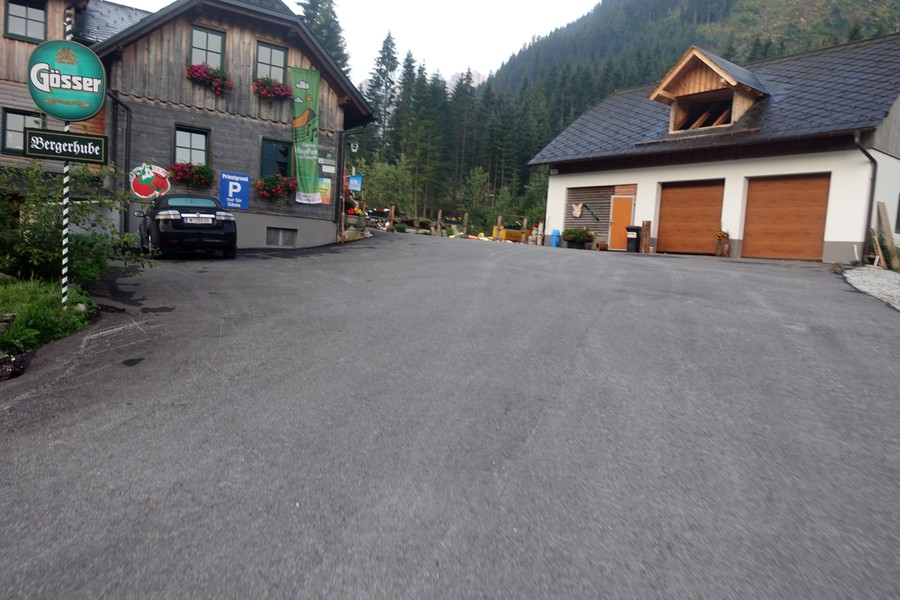 Zwischen Trieben und Hohentauern auf einem Schotterweg zum Parkplatz bei der Bergerhube. Parken ist dort gebührenfrei.