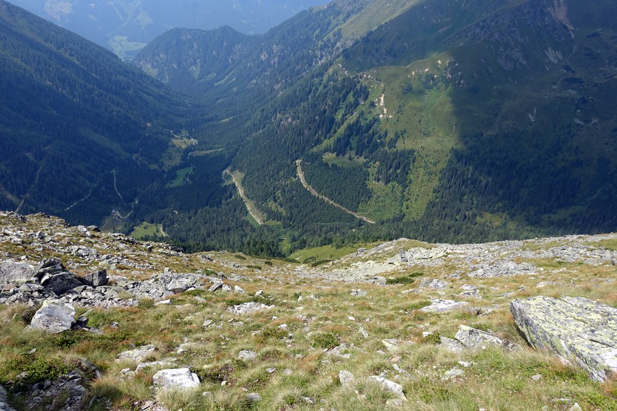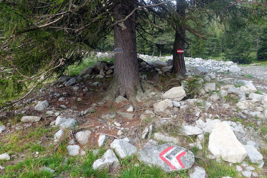 Alternative 1 - nur Gamskögelgrat: Parkplatz Bergerhube - Mödringalm - Abzweigung links (blaue Markierung auf Baum) - auf nicht markiertem Weg bergauf zur Amtmannscharte - Gamkögelgrat - Gamskögel (2386 m) - weitere Richtung Hochleitenspitze - kurz davor rechts Abzweigung und Abstieg Richtung Parkplatz Bergerhube