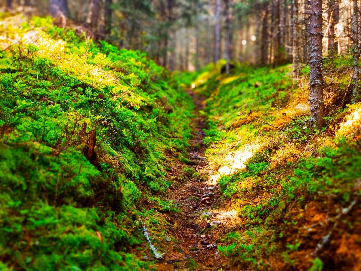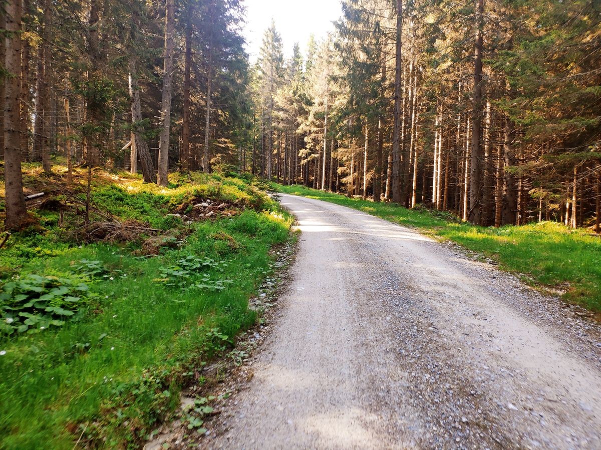 - Die Route führt nun kurz über einen Pfad durch den Wald und dann länger dem Forstweg entlang.