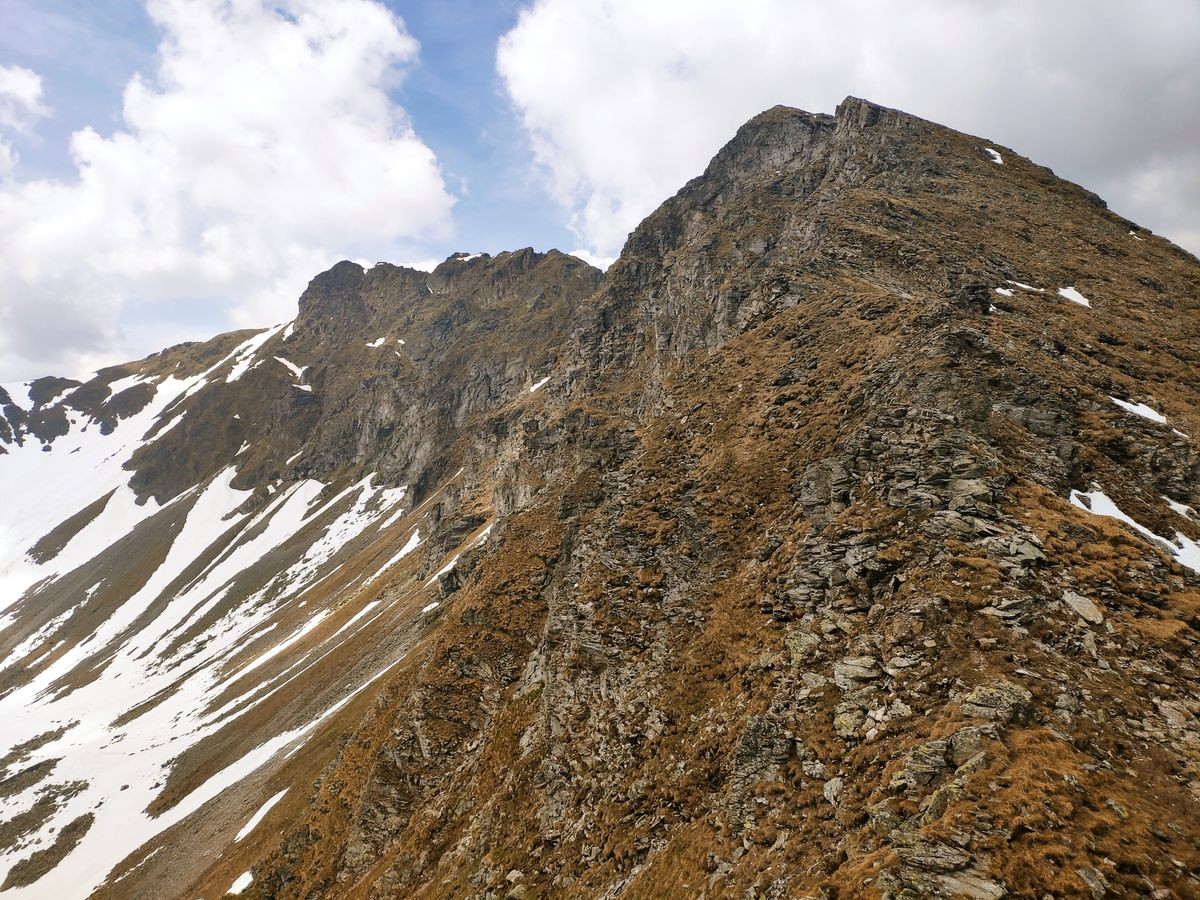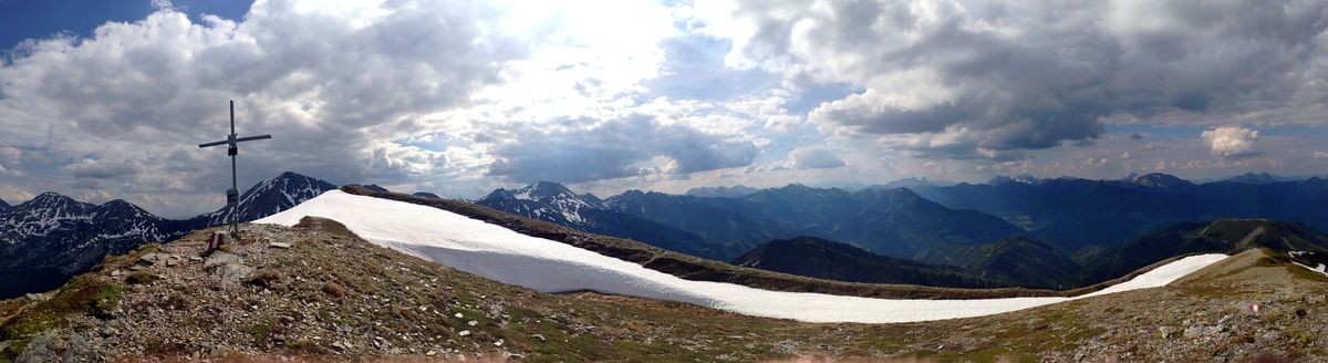 - Nun weiter Richtung Feistererhorn. Zwischen Kleinem Reichhart und Feistererhorn kann bei Müdigkeit der direkte Abstieg zur Schönebenalm genommen werden oder mit dem Feistererhorn (2.081 m) noch der letzte Gipfel der Tour anvisiert werden.