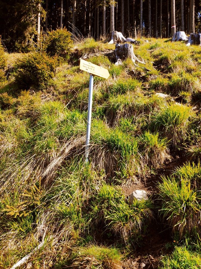 - Dem Forstweg etwa 10 Minuten folgen bis rechts eine Abzweigung in den Wald führt