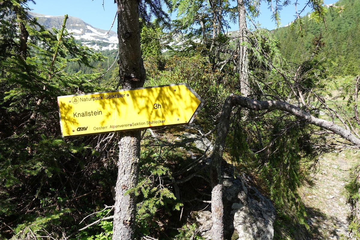 - Vom kostenlosen Parkplatz in St. Nikolai im Sölktal der durchgehend markierten und beschilderten Route 791 auf den Großen Knallstein folgen