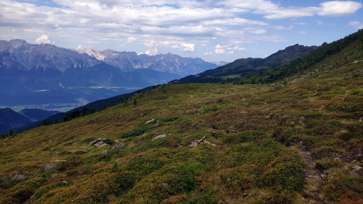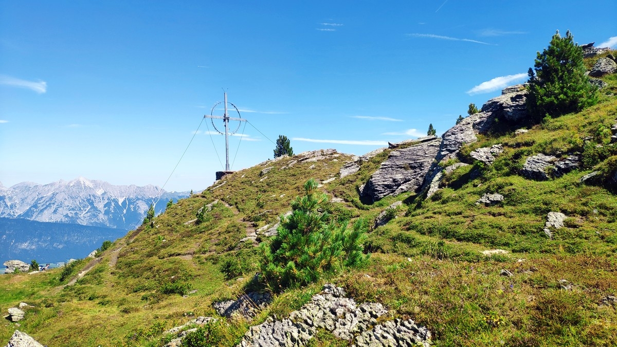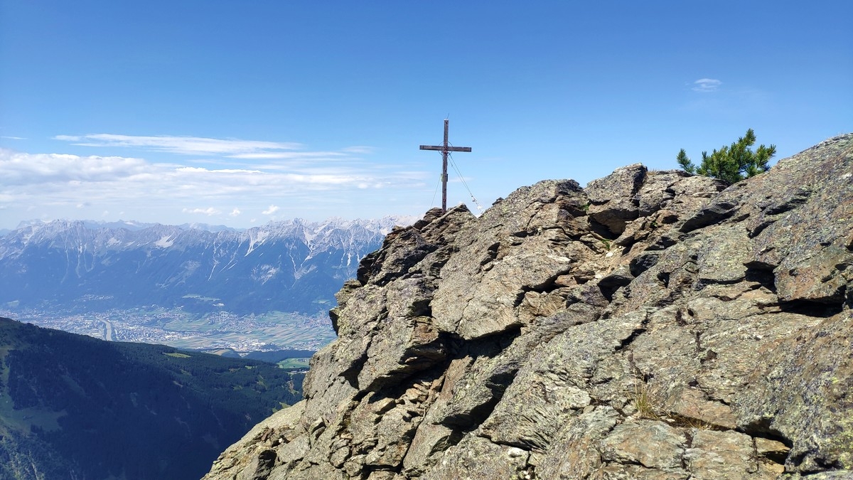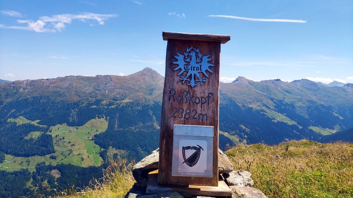 - Nun einen Pfad südlich Richtung Haneburger Gipfelkreuz. Auf dem Weg dorthin werden mit der Wattenspitze (2.321 m) und dem Roßkopf (2.382 m) zwei weitere Nebengipfel erreicht.