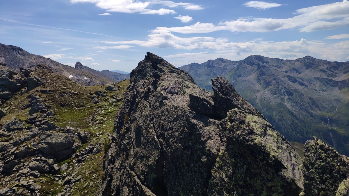 Von dort folgt ein kurzer, aber ausgesetzter Grat (UIAA 2) zum tatsächlich höchsten Punkt des Haneburger. Abschließend führt die Tour auf den 2.749 Meter hohen Malgrübler, dem höchsten Gipfel der Bergtour.