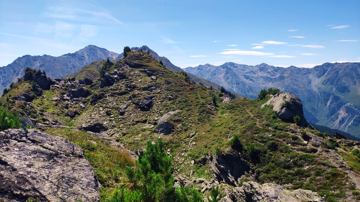- Nun vom Haneburger weiter südlich absteigen und danach nach rechts queren zum markierten Wanderweg, der auf den Malgrübler führt. Es ist der letzte und höchste Gipfel (2.749 m) der Tour.
