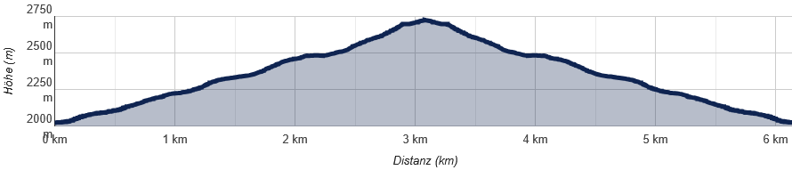 Technisch einfach, aber durchaus sportlich: Auf knapp 3 km Strecke legt man rund 700 Höhenmeter zurück – das ergibt über 20 % Steigung. Wer seine Kondition testen möchte, bekommt hier die perfekte Gelegenheit, ohne gleich eine ganze Alpenüberquerung zu starten.