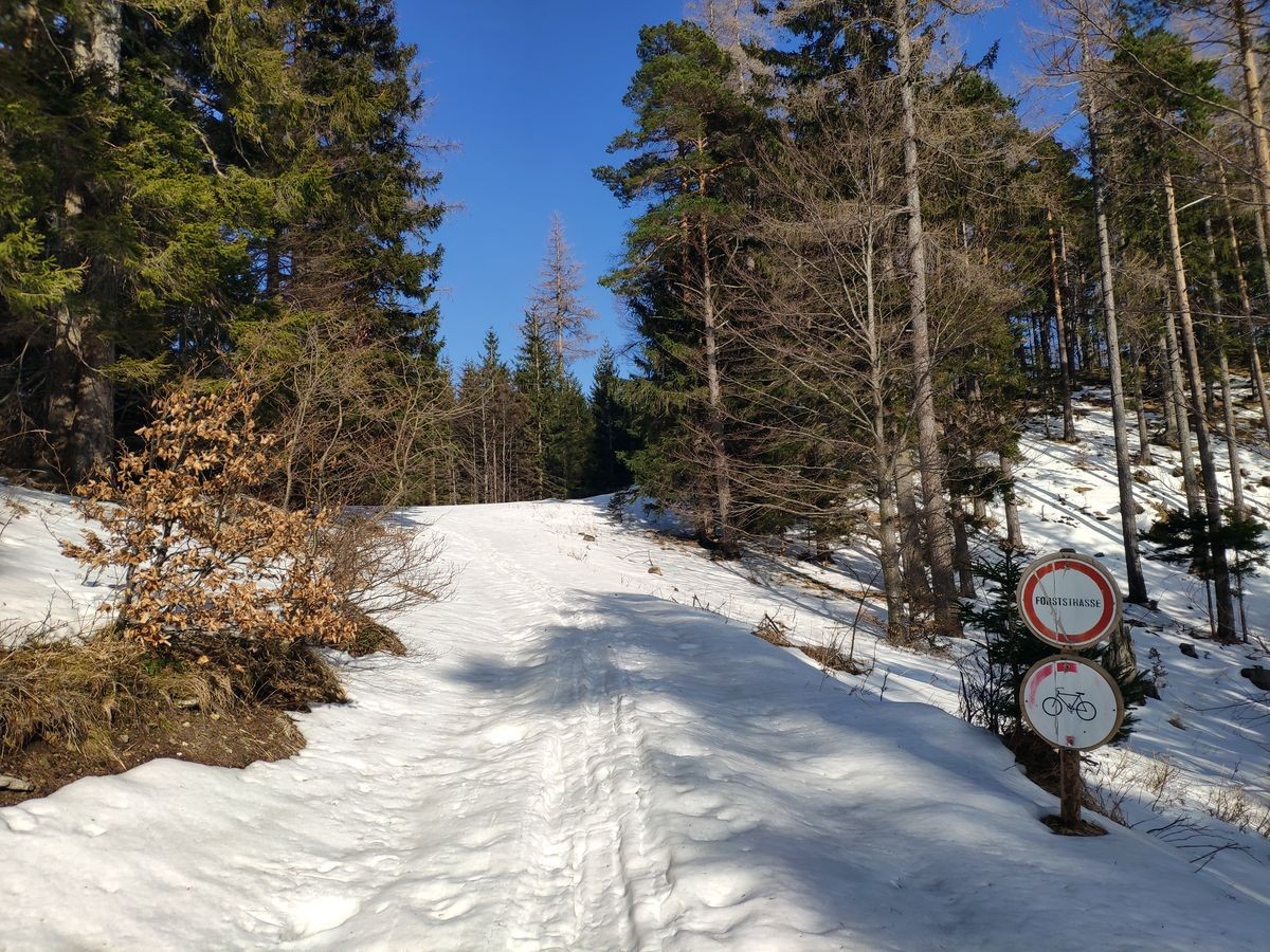 - Kurz nach dem großen Parkplatz dem markierten Wanderweg Richtung Ebenwald folgen (90 Minuten)