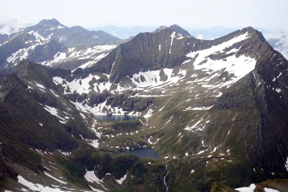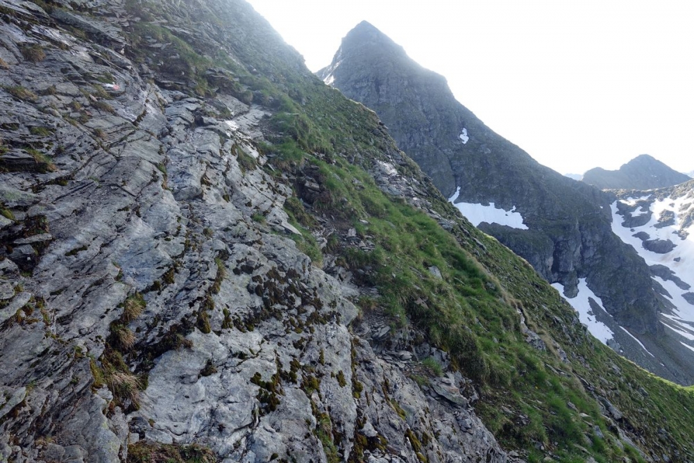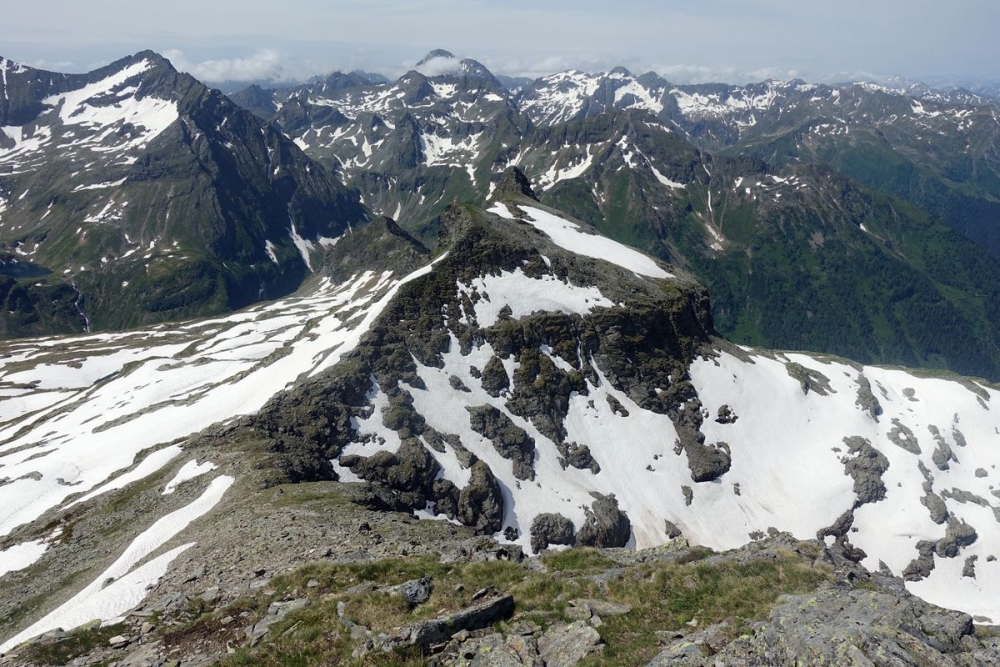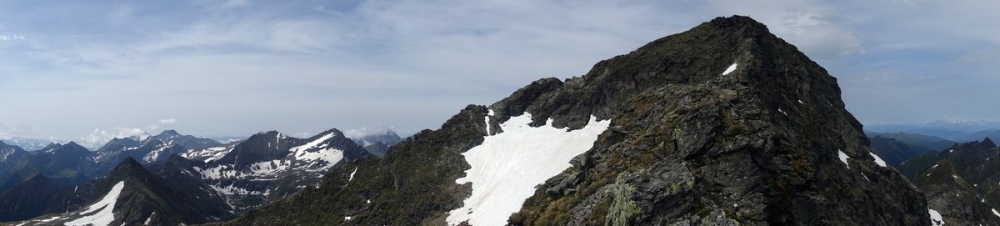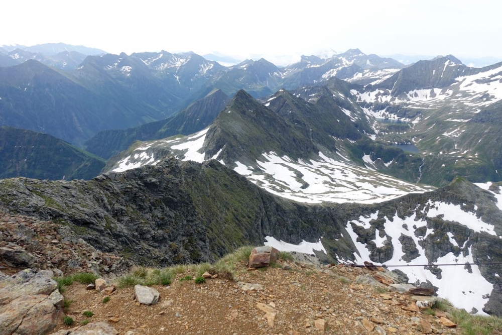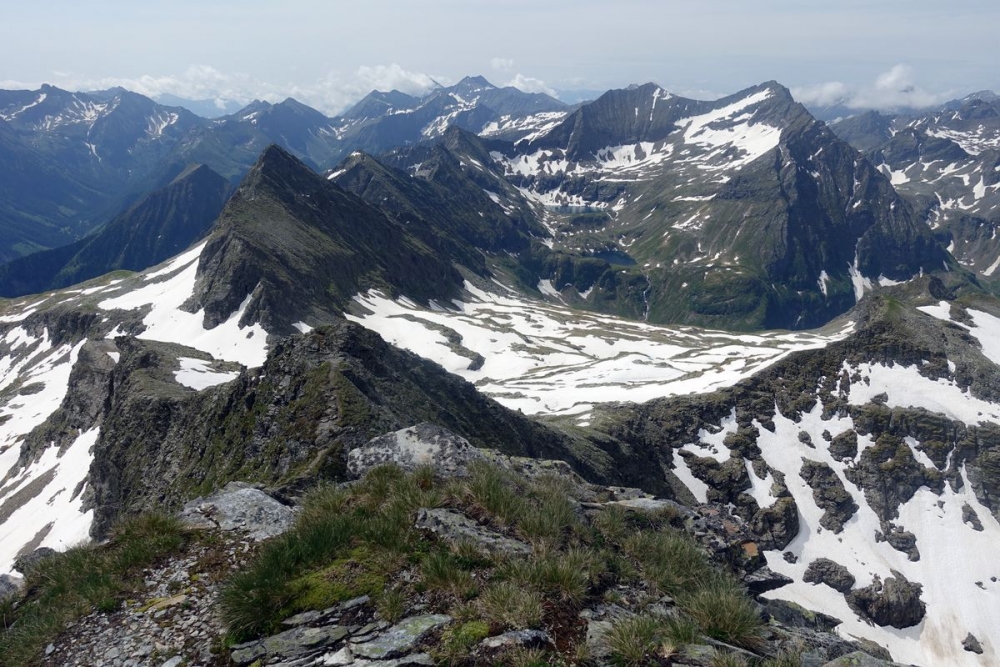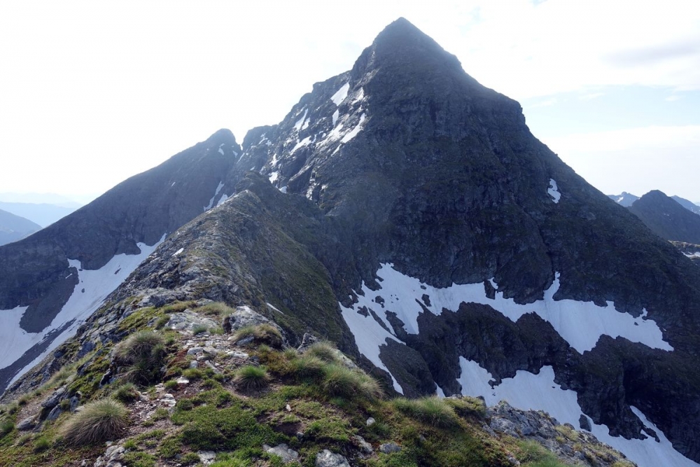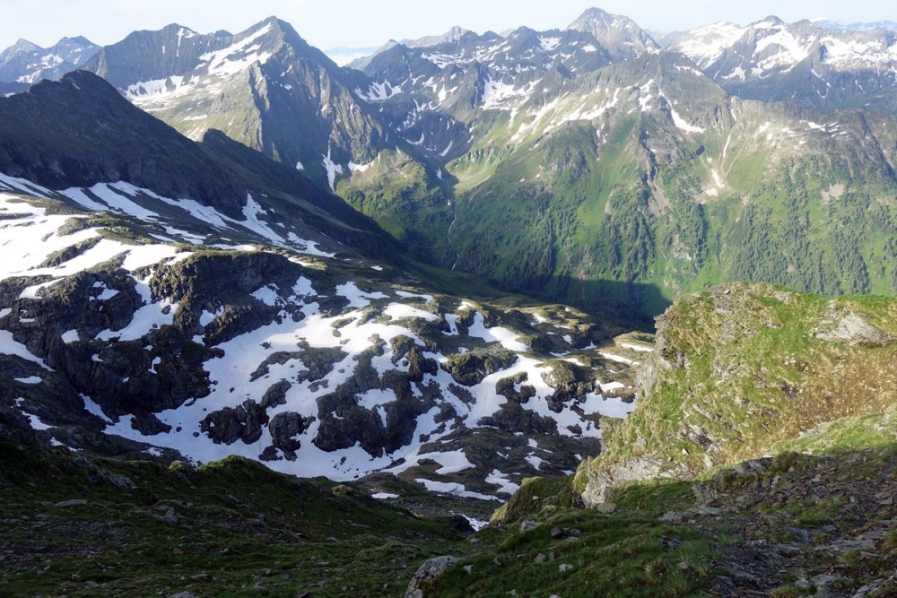 Ganz links der Abstiegsweg über den Grat