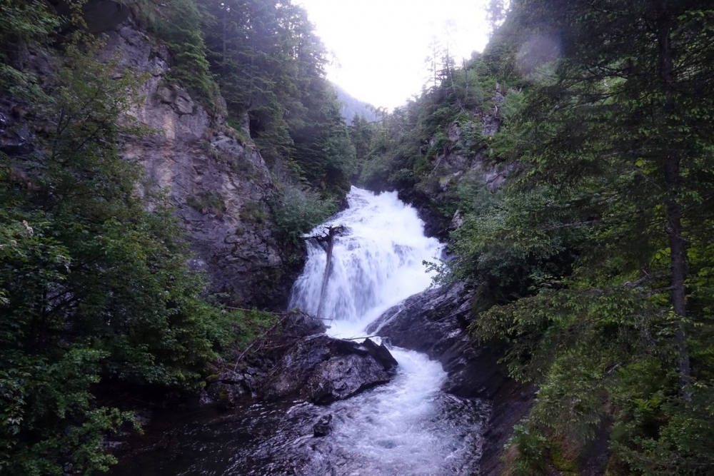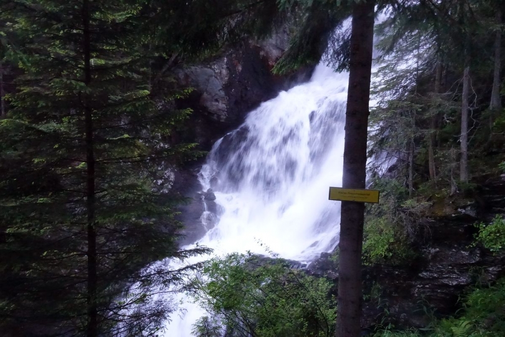 Ehe es an der Preintalerhütte vorbei entlang des Wasserfalles durch den Wald bergab geht