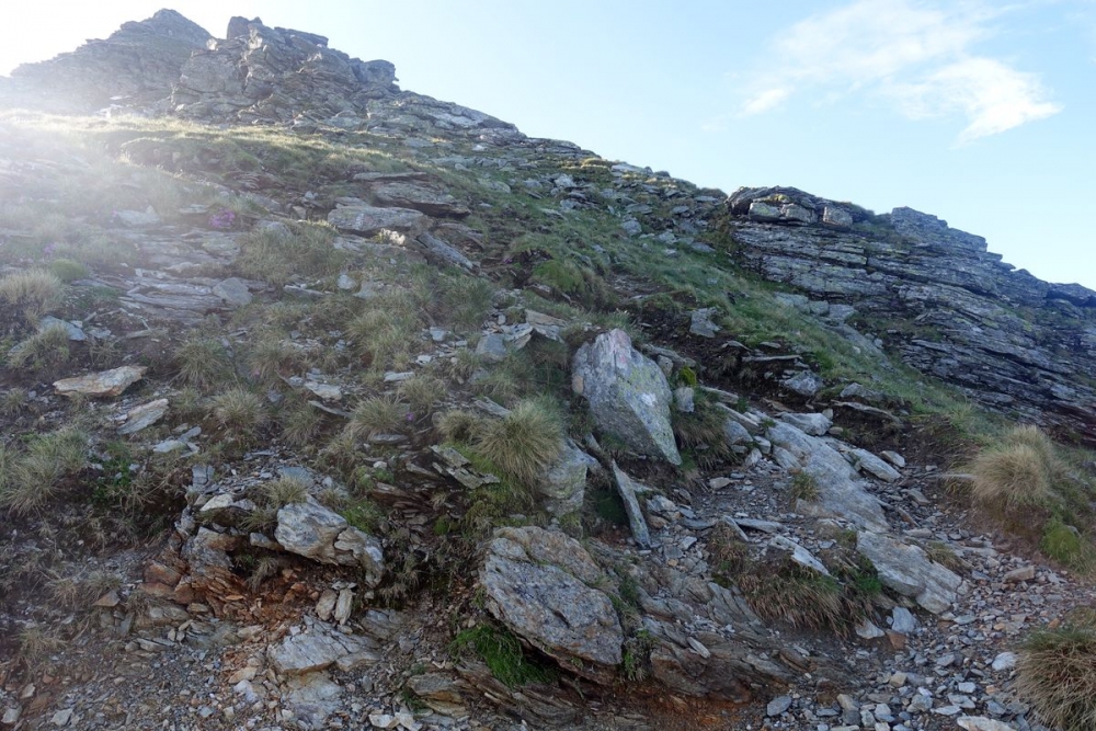 Einen wirklichen Pfad gibt es nun nicht mehr. Einfach den Markierungen folgen. In der BIldmitte der Gipfel