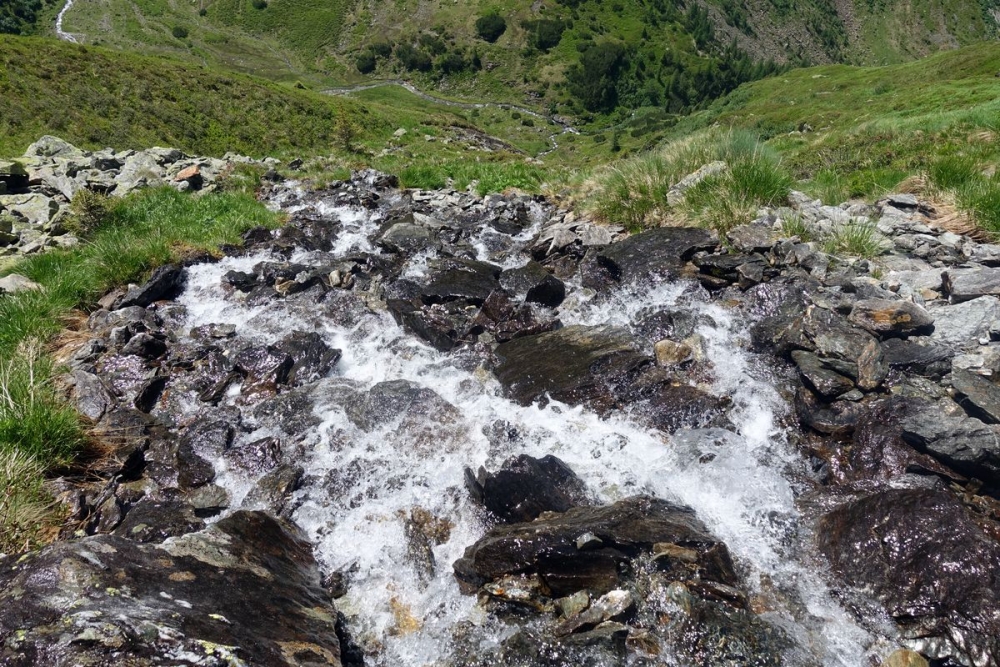 Nun erreiche ich die Abzweigung, wo ich beim Aufstieg dem Weg zur Neualm folgte.