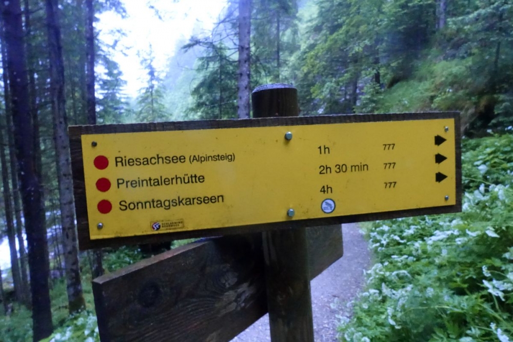 Nun kann man etnweder rechts den Robert-Höfer Steig zur Neualm nehmen oder man folgt weiterhin dem Abstieg zur Preintalerhütte