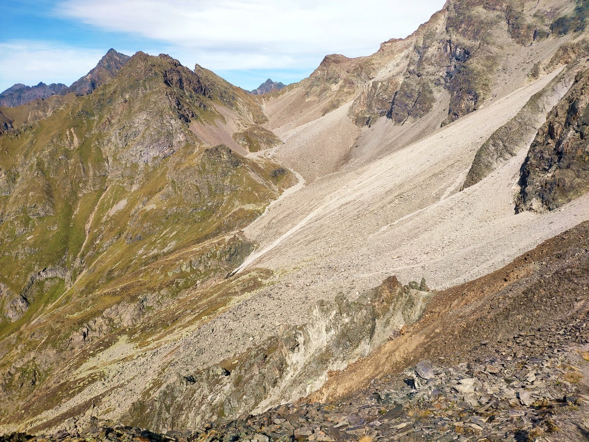 - Abstieg von der Hohen Geige über den Westgrat bis nach Gawinden (der alte Normalweg = Notabstieg sollte hingegen gemieden werden).
