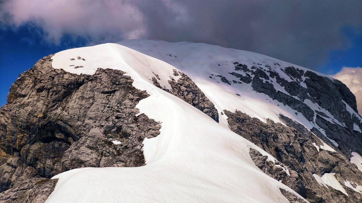 Der Übergang vom Ostgipfel zum Westgipfel kann im Frühsommer durch den Altschnee deutlich erschwert werden.