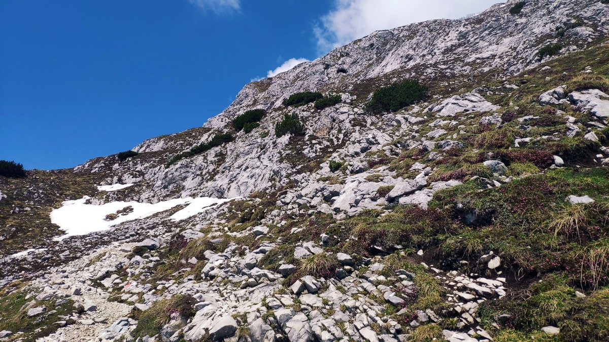 - Von der Rauthhütte zunächst kurz flach und dann steil bergauf auf einem durchgehend gut markierten Weg über Schotter und Felsen.