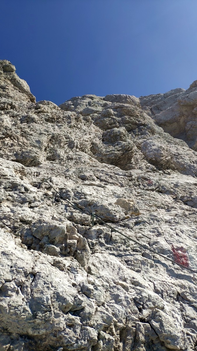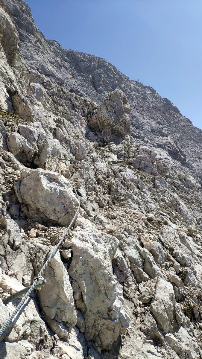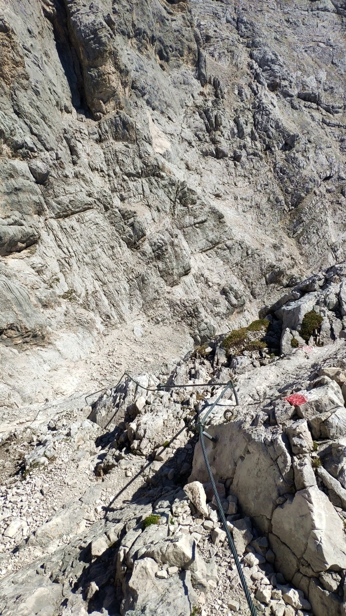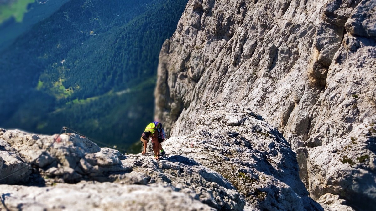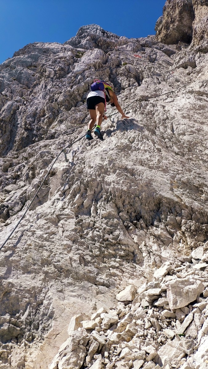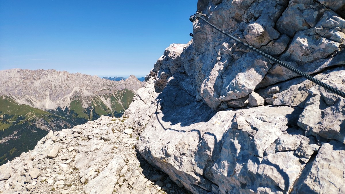 Ein Klettersteigset wird grundsätzlich nicht benötigt und ist wohl eher unnötiger Ballast für diese lange Tour. Aus Sicherheitsgründen kann dieses natürlich nicht schaden, vor allem bei wenig Erfahrung in diesem Bereich. Wer allerdings bereits oft auf B-Steigen sicher unterwegs war, kommt auch bei dieser Tour gut ohne Klettersteig-Ausrüstung aus.