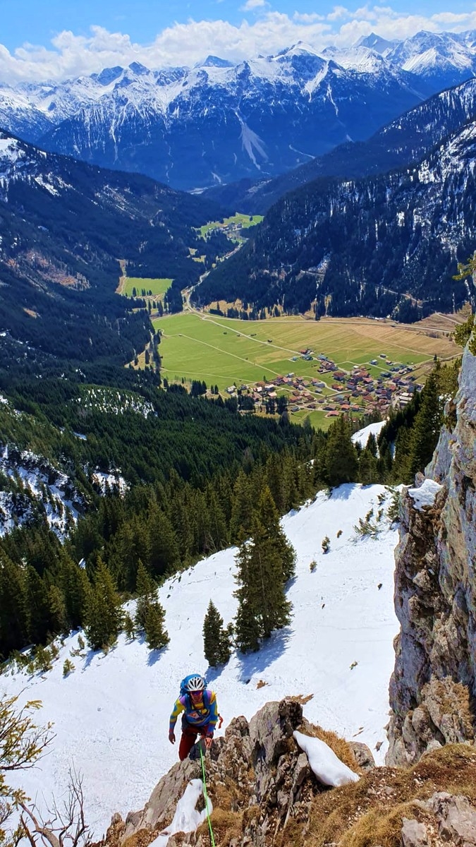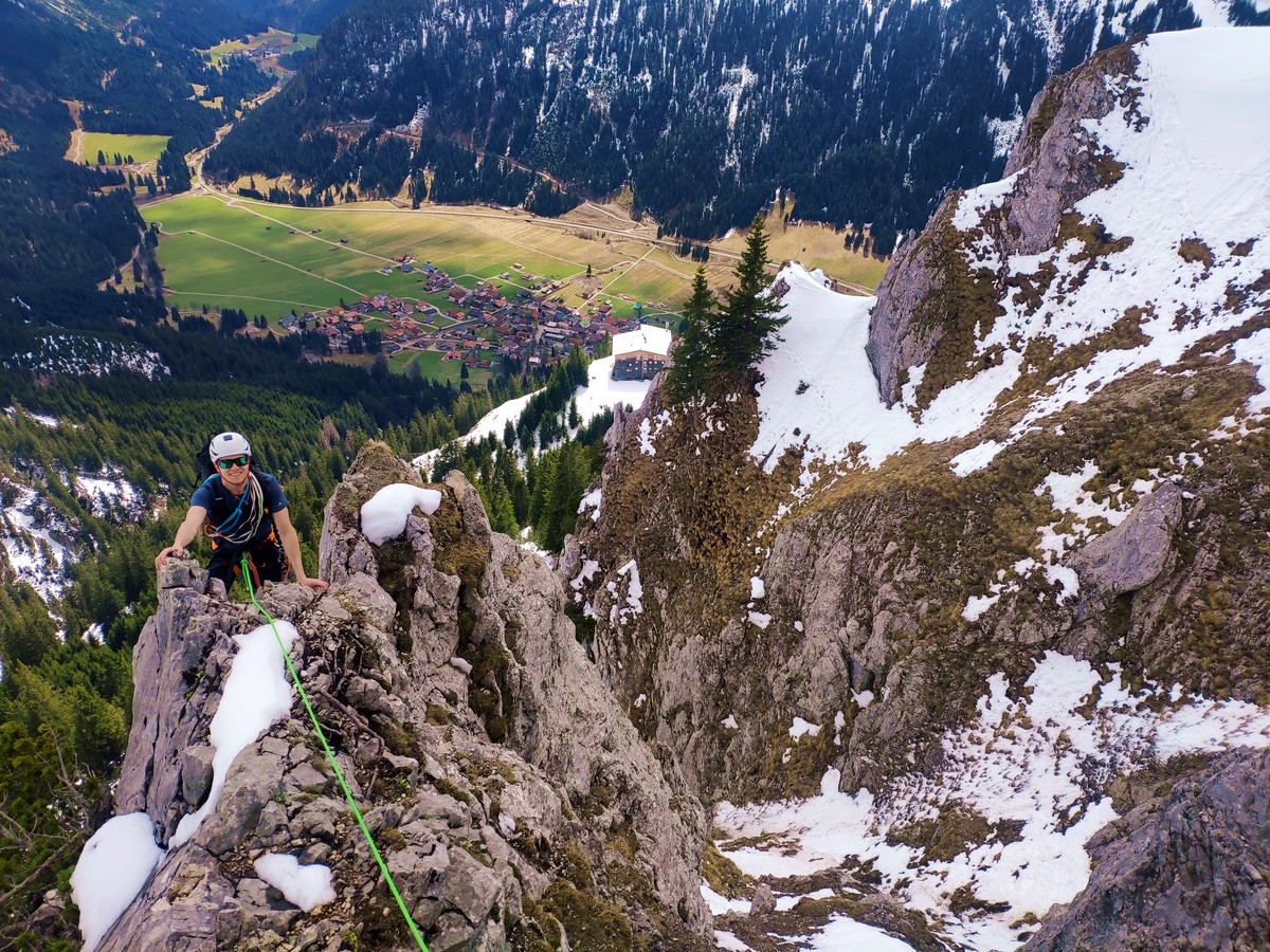 Der Hüttengrat führt über fünf Seillängen (UIAA 4+) vom Gimpelhaus Richtung Hochwiesler in den Allgäuer Alpen.