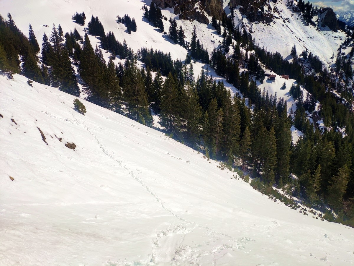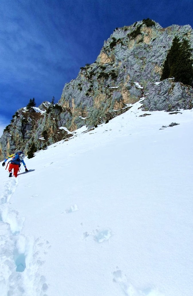 - Der Einstieg befindet sich kurz vor der Abseilpiste (deutlich sichtbare Rinne).