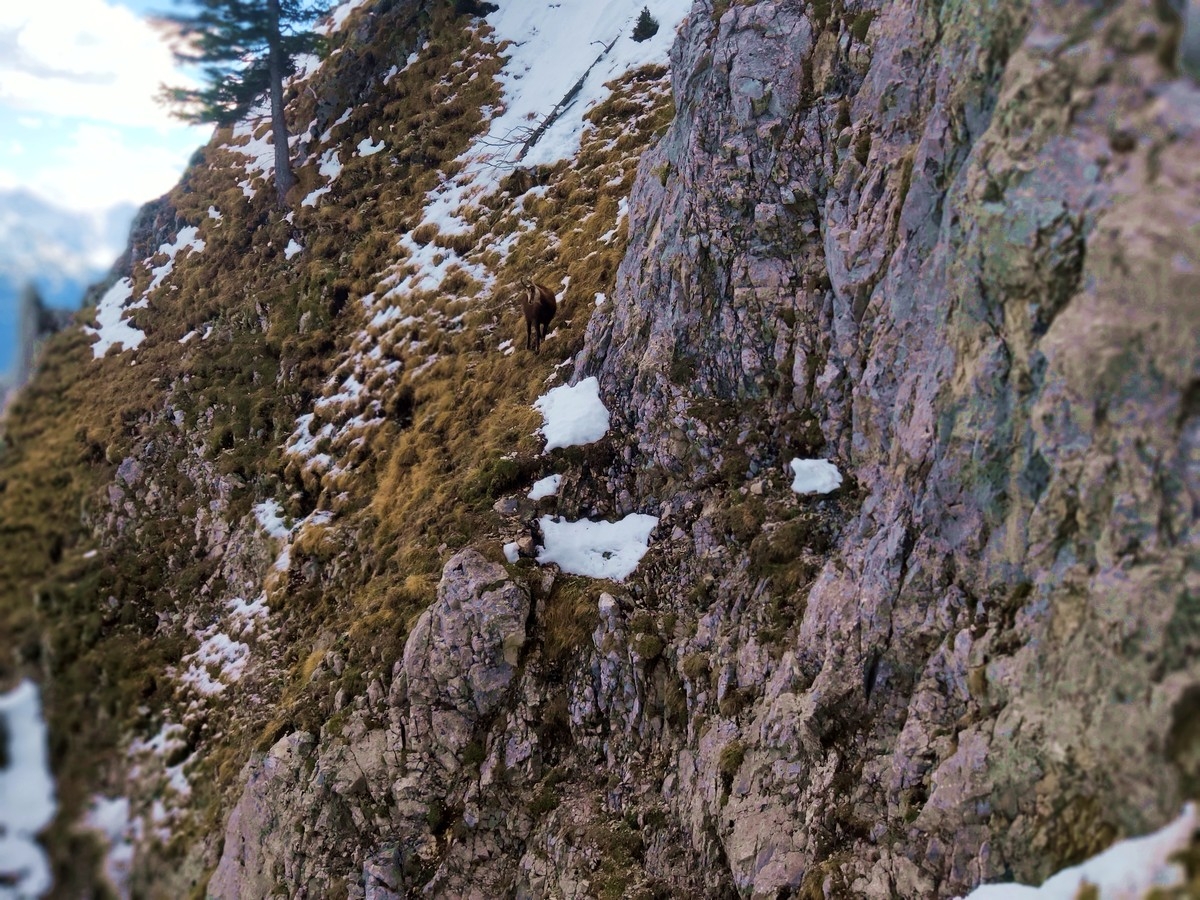 - Vom Gimpelhaus nun dem Wanderweg halbrechts Richtung Gimeplkar weiter. Nach etwa 10 Minuten bei einem großen Felsen links abzweigen und auf einem Pfad zum Einstieg in den Hüttengrat.