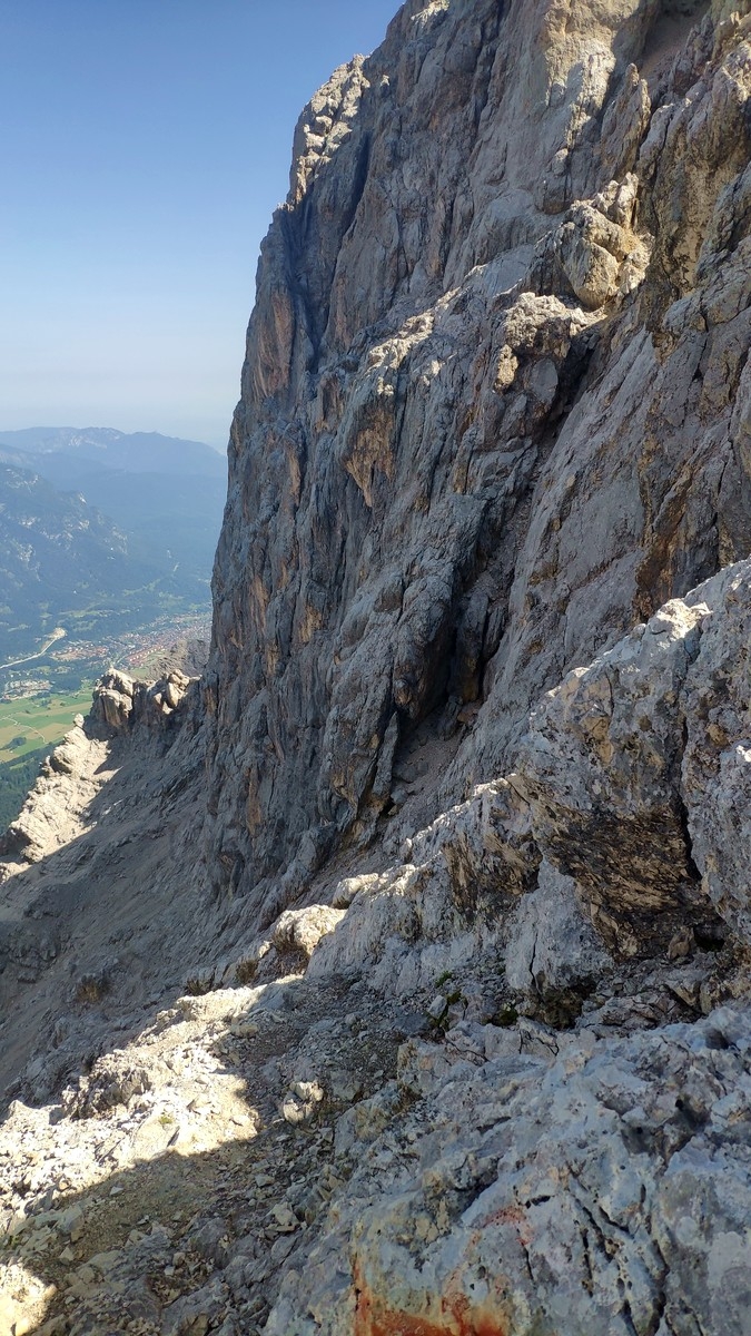 - Von der Äußeren Höllentalspitze bergab klettern (UIAA 2 + C-Klettersteig).