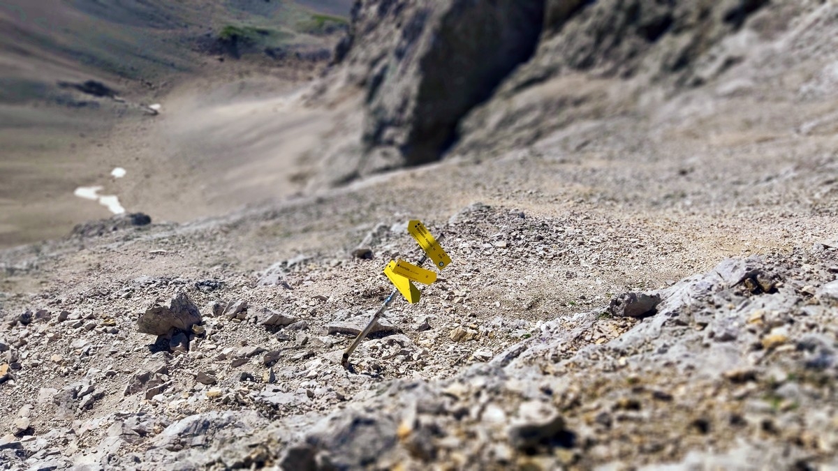 - Über A/B-Steige und sehr leichtes Klettern zum Fuße des Hochblassen absteigen.