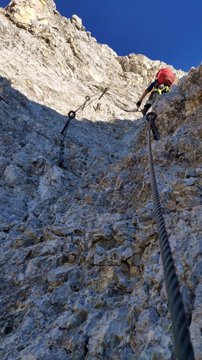 - Nach den Höllentalspitzen wird die Tour noch einmal deutlich fordernder. Es folgen nun viele Klettersteige und einige ausgesetzte Kletterstellen.