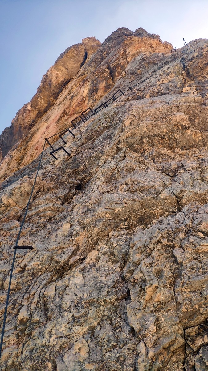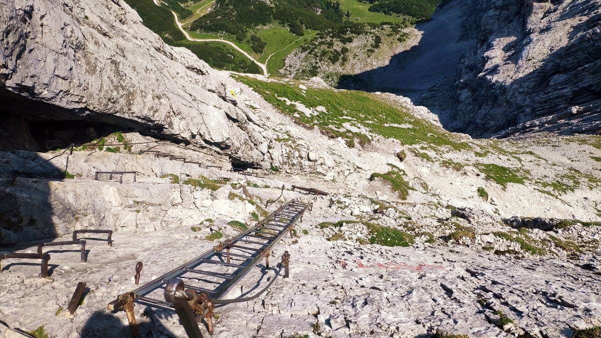 Vor der Vollkarspitze folgt der einzige D-Klettersteig. Ein etwa 25 Meter hoher Klettersteig. Womit wir zur nächsten Frage kommen.